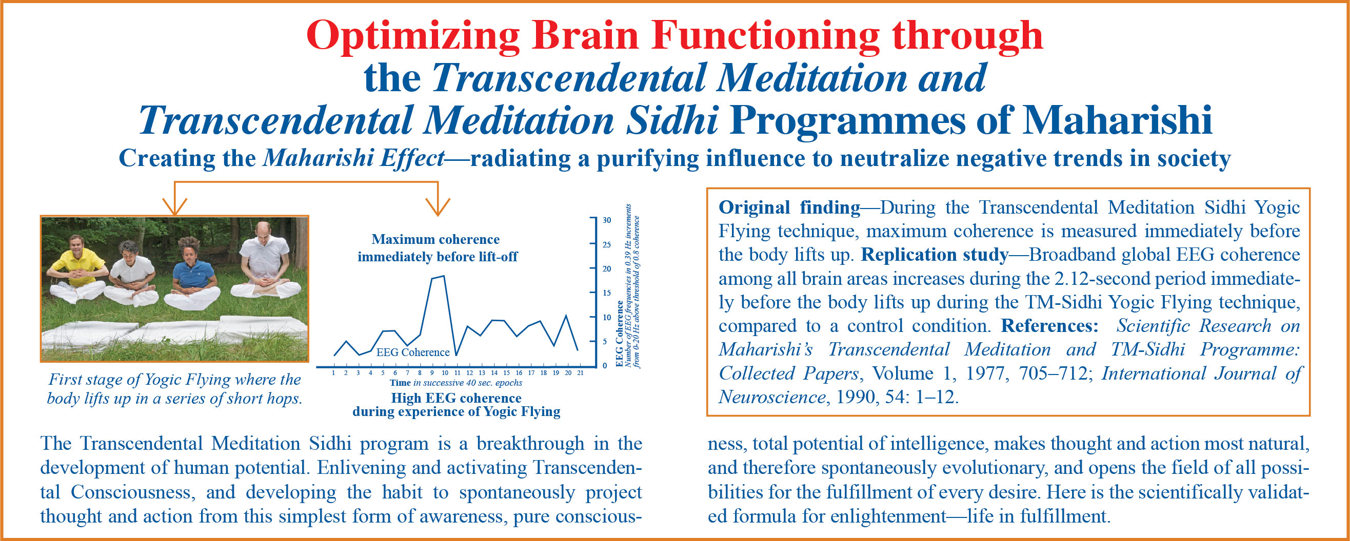 The TM-Sidhi programme was brought to the world by Maharishi Mahesh Yogi in 1976 and has been learned by more than 300,000 people.